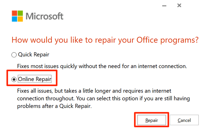 - Use the official Microsoft Office repair tool to fix any corrupted files.